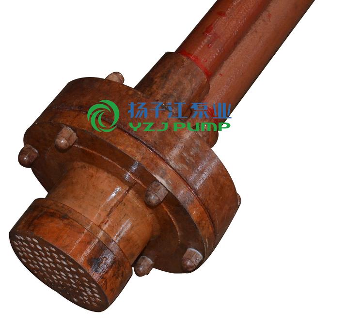 三、維修時,先將泵從貯罐上拆下,拆下電機及機座,拆下下泵殼,打掉下軸套及葉輪(注意泵軸上防腐層)松開上軸承座6只六角螺栓,然后把正條泵軸和軸承部件一起拉出即可進行檢修。